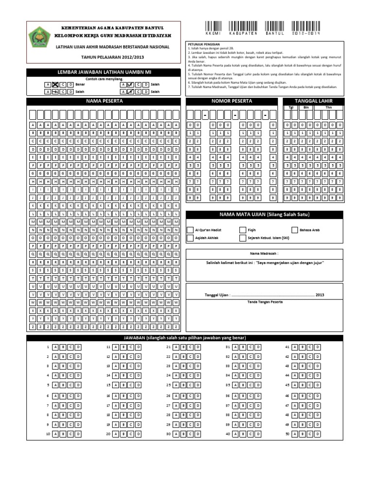 Contoh Lembar Jawaban Ujian Madrasah / Download Ljk Lembar Balasan Komputer Format Excel Dapat Di Edit Untuk Sd Mi Smp Mts Sma Smk Ma : Lembar soal isian singkat nama :.. Lembar jawaban ini saya ambil dari lembar jawaban smpit iqra'. Ljk uas ukuran folio f4 pilihan ganda dan essay format sumber contoh lembar jawaban komputer ljk un us semua jenjang sumber : Contoh soal matematika ujian madrasah (um) mts sudah dilengkapi oleh kunci jawaban, yang dapat digunakan untuk latihan soal bagi siswa mts. Contoh proposal ujian sekolah dan ujian nasional t. Sekolah/madrasah penyelenggara ujian yang melanggar ketentuan pos tidak akan ditunjuk sebagai penyelenggara ujian yang akan datang.